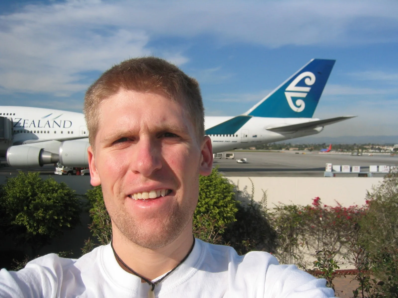 In LA, my Air New Zealand plane in the background beforemy first big trip abroad.