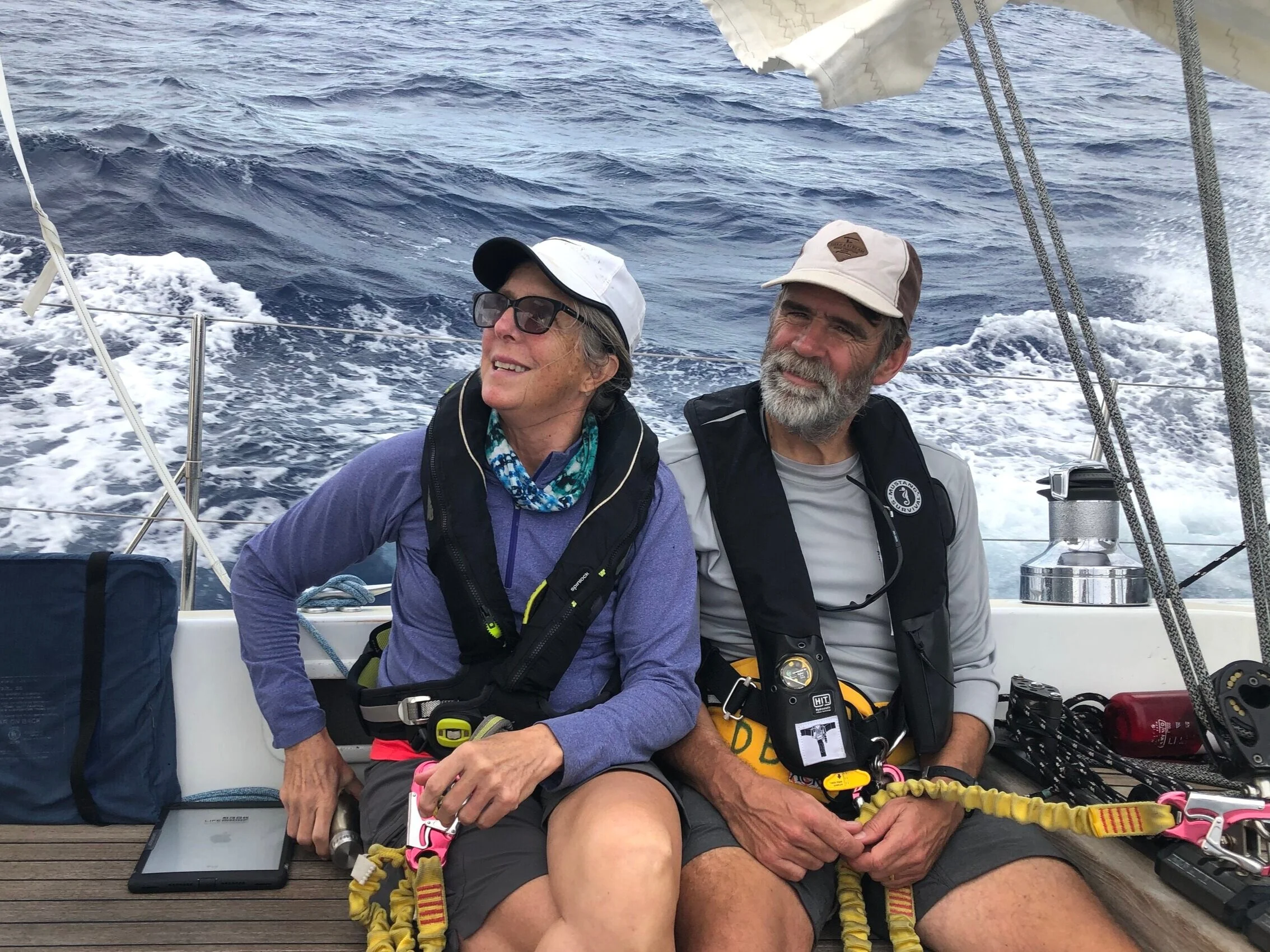 We just can't stay away from Isbjorn! Or is it that we just can't get to our own boat??? Either way, on November 7-21 we made a very cool 14 day 1904 mile passage from Annapolis to Antigua on Isbjorn, 59-North's 48 foot Swan. It was the longest passage ever for David and second longest for Kitty after her 2019 Atlantic crossing. Sean Westoby, who we had previously sailed with in the BVI, skippered the boat along with mate Liz and 5 crew: Frederick, a 20-something Danish cargo trader currently living in Washington DC; Marilyn, a retired trauma nurse practitioner from Wilmington Delaware; Eliza, an 18 year old Californian doing a gap year before college; and the two of us.